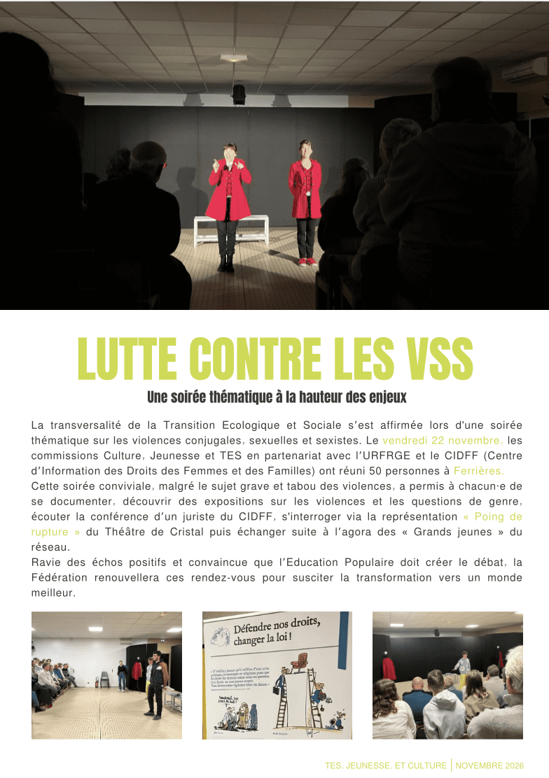 Dans un contexte où la lutte contre les Violences Sexistes et Sexuelles (VSS) devient une priorité sociétale, plusieurs membres de la Commission Jeunesse de la FDFR 54 ont choisi de s’engager autour de cette question essentielle.