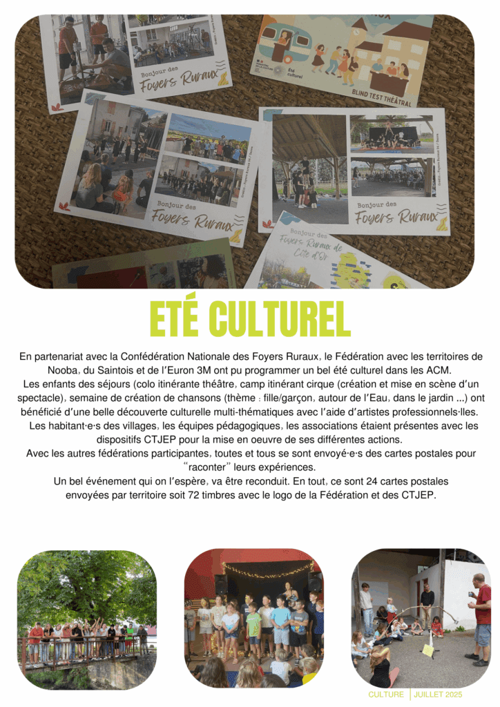 La Fédération c’est aussi des actions culturelles et artisitques collectives avec les territoires. Voici une action de ce type en mots et images, vécue cet été !